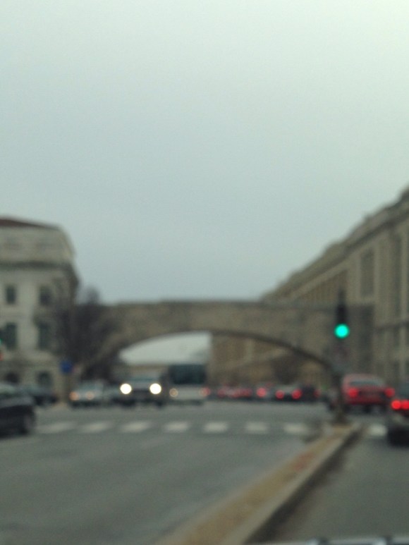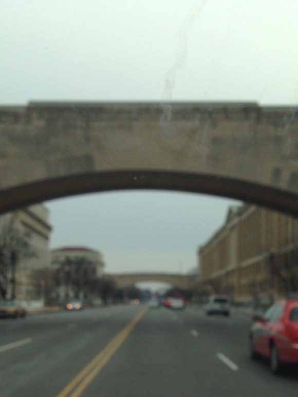 There is a bridge that links up the Department of Agriculture, on the right to its building across the street. I imagine Juliette in Verona when I drive underneath it.