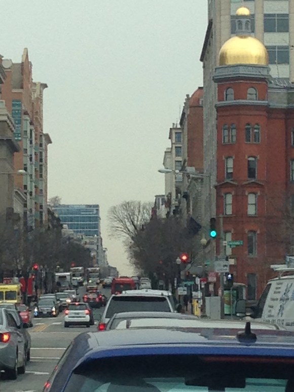 I am driving on Independence Avenue, one of the most beautiful avenues in the whole world. I love the double bridges in this shot. Almost every morning, it takes my breath away.
