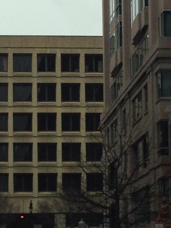 But before I get there, I turn left on D Street, N.W. and boom – this monstrosity. FBI Headquarters. It will be demolished soon.